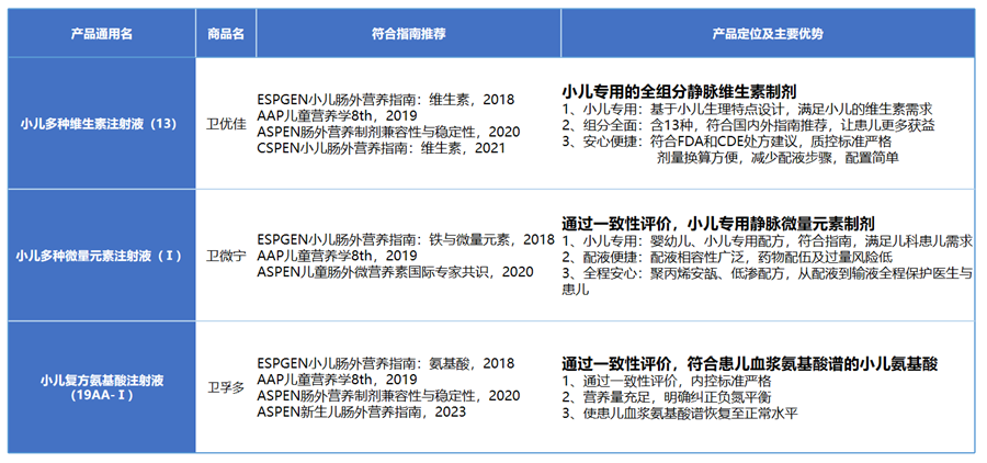 金沙js1996儿科线肠外营养产品特点
